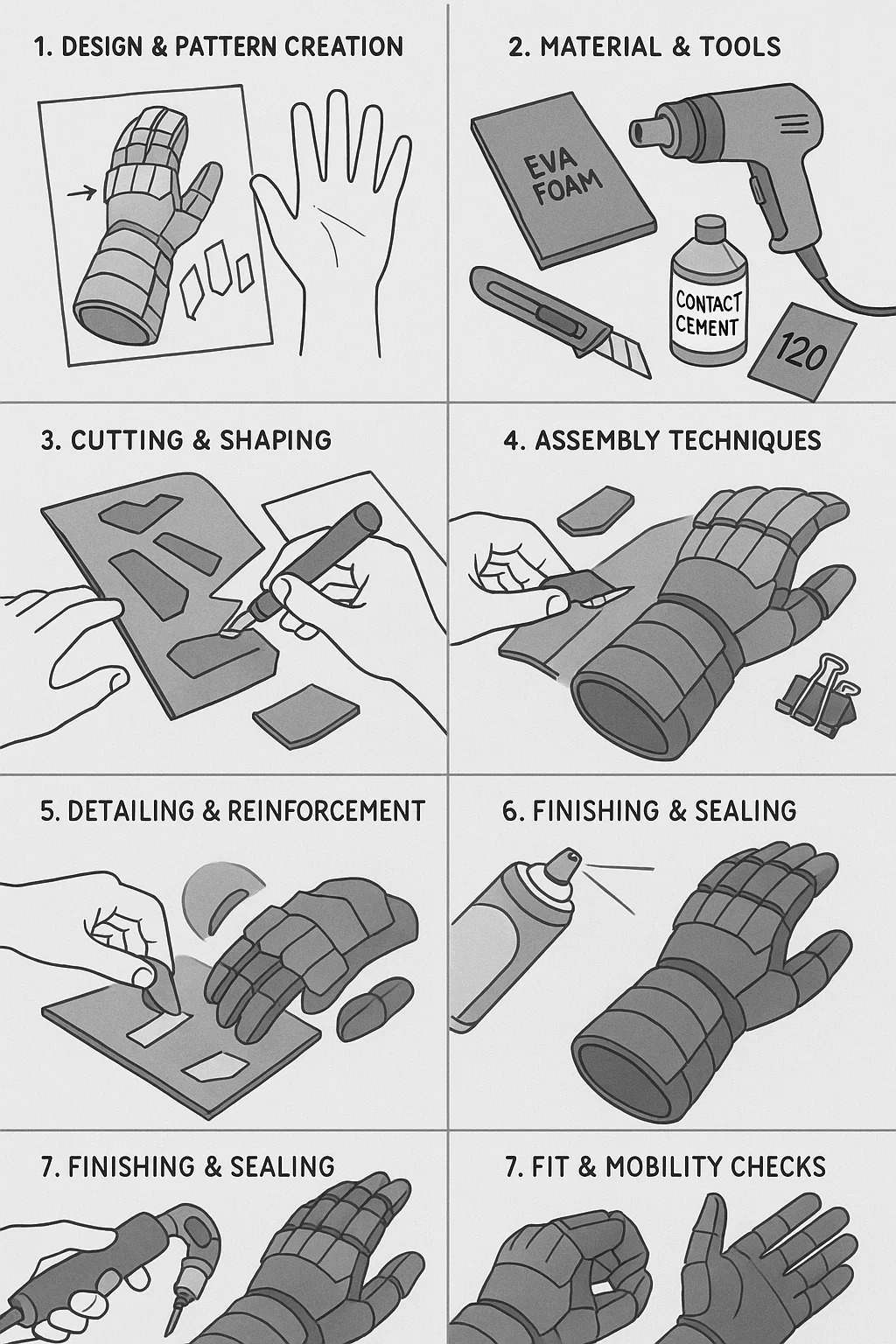 EVA oluşturma köpük eldiven veya eldivenler cosplay, LARP veya kostüm projeleri için popüler bir yöntemdir. İşte sürecin pratik bir dökümü: